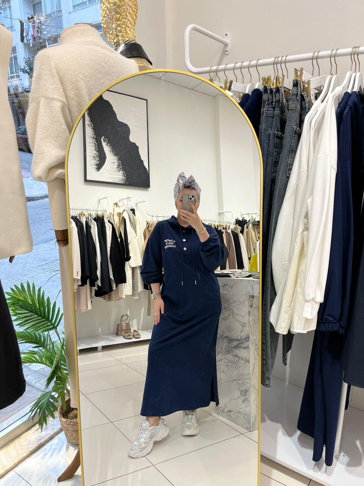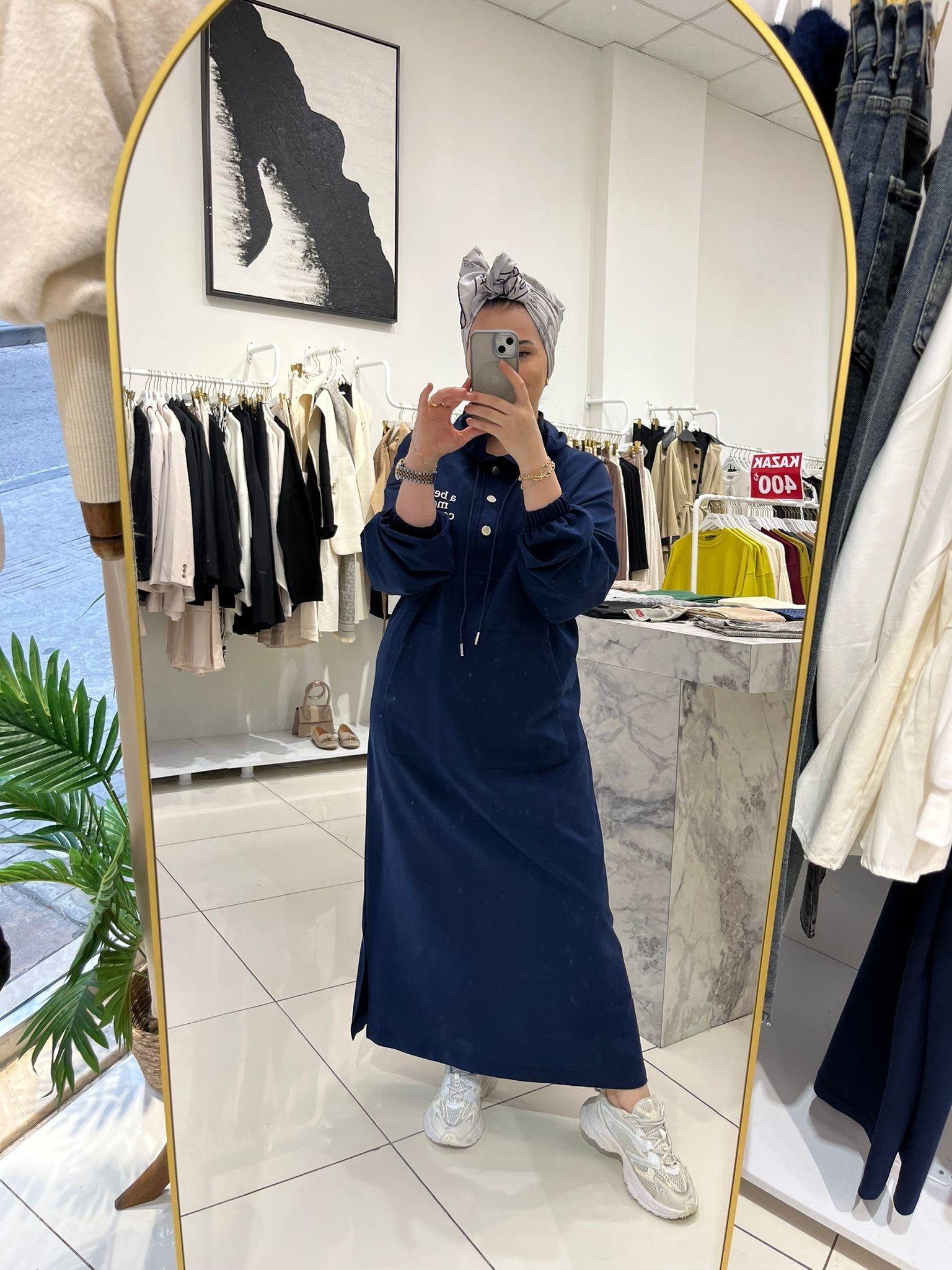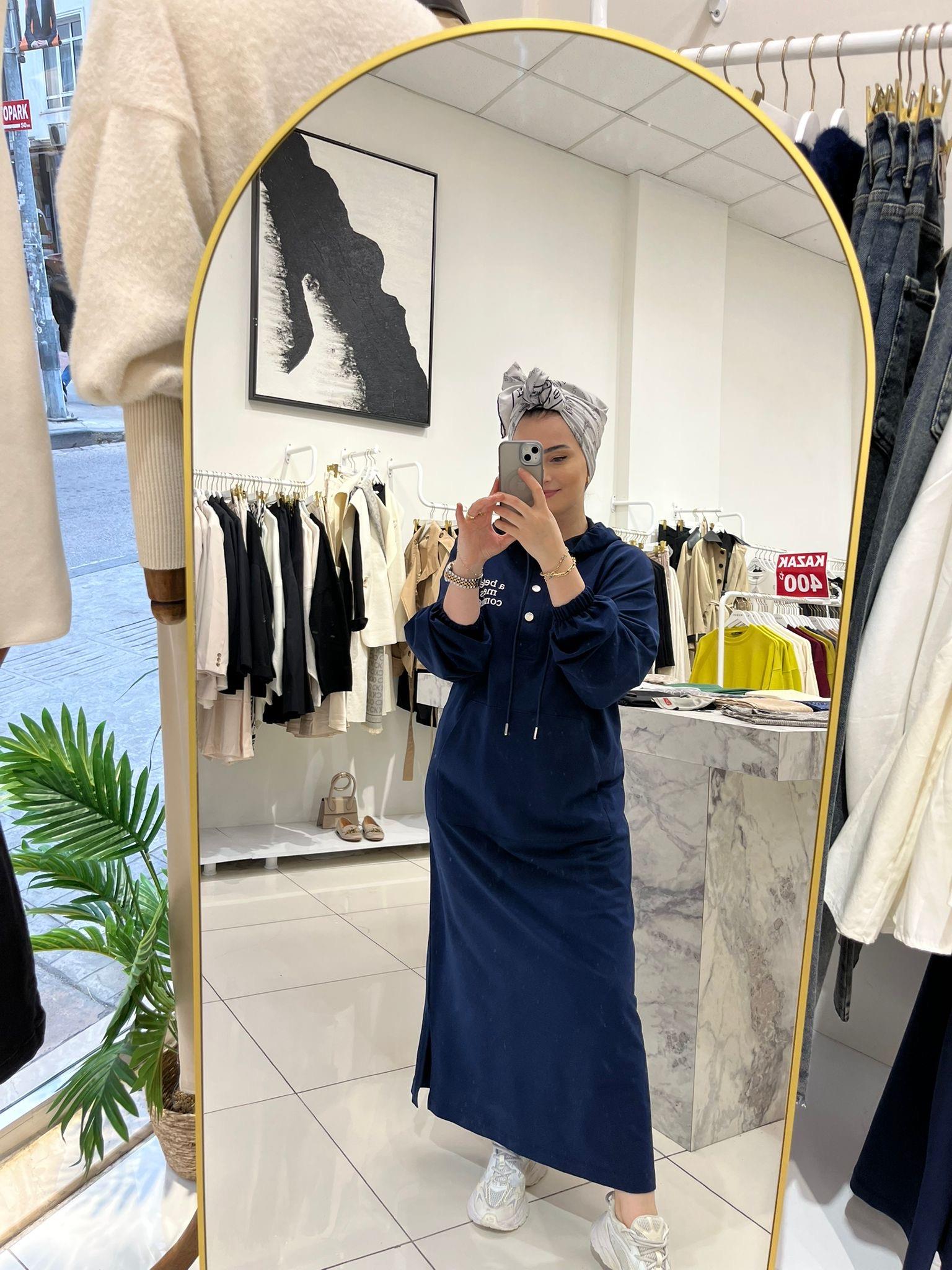 BASKILI KAPÜŞONLU MODAL ELBİSE