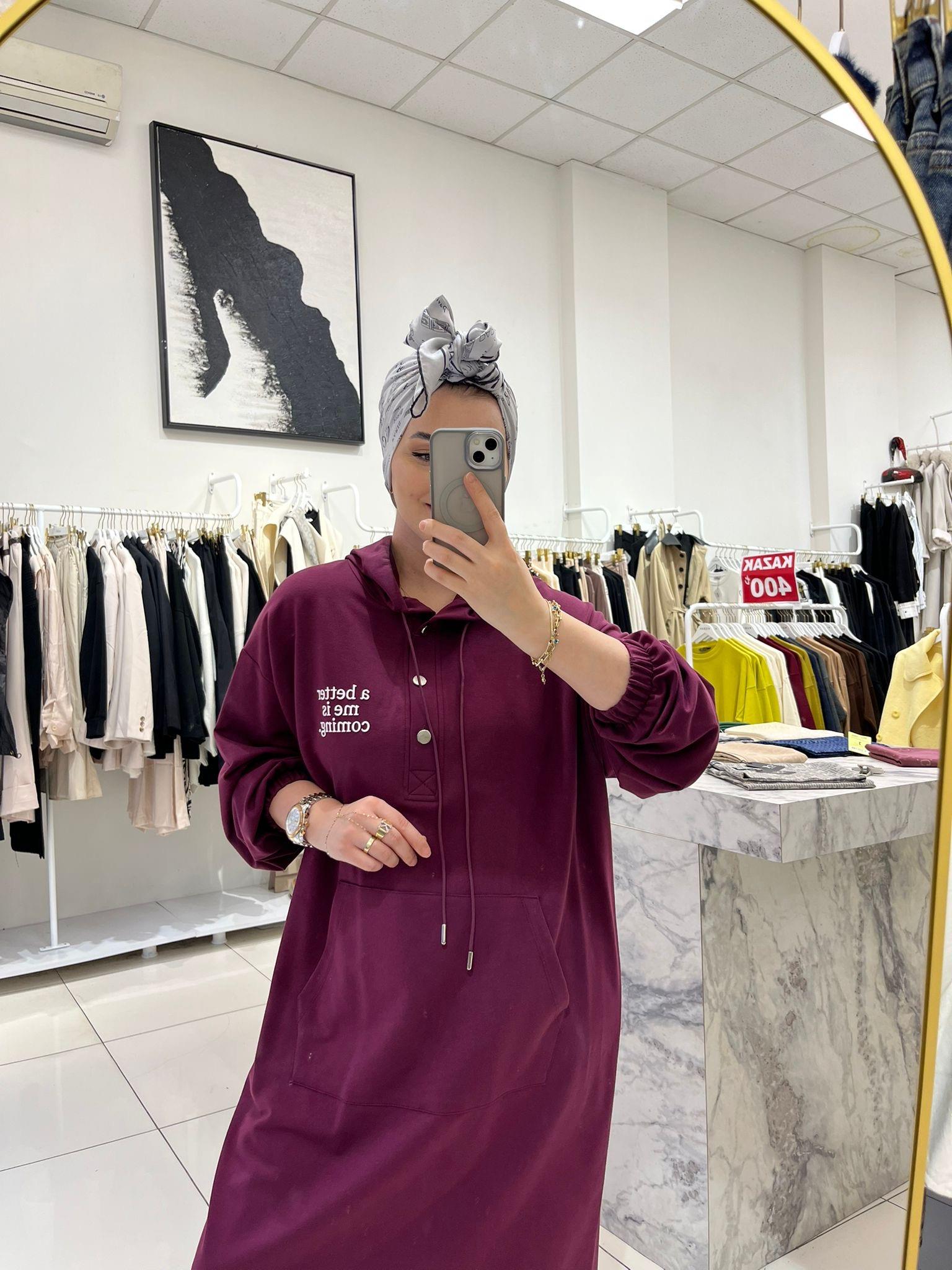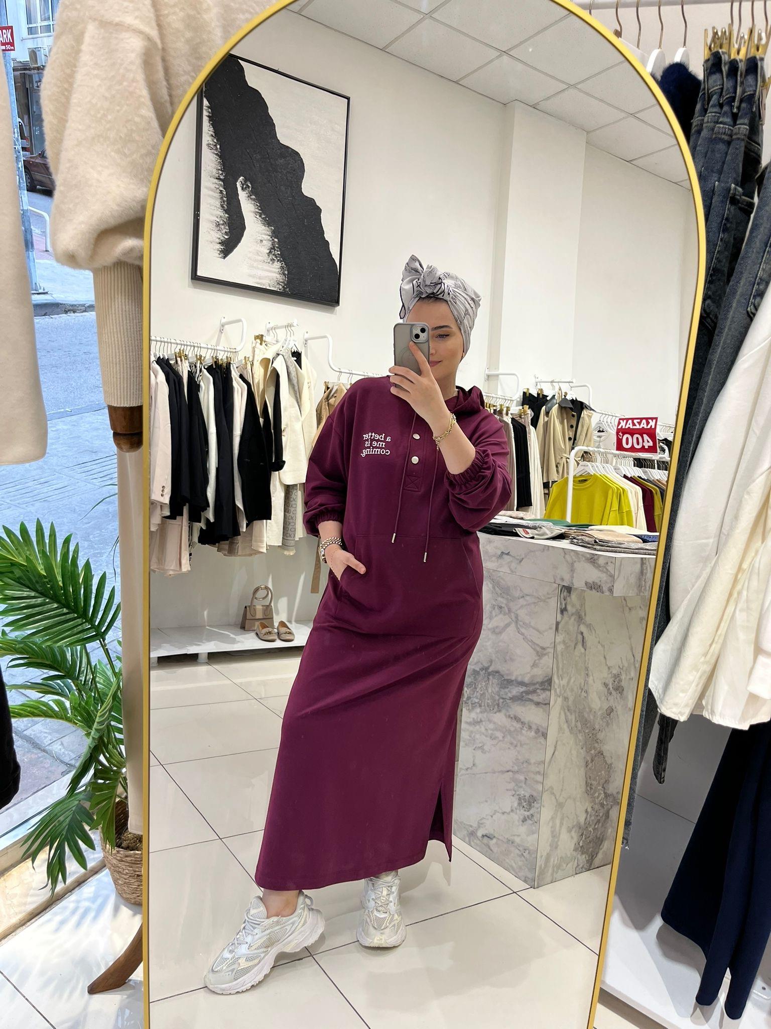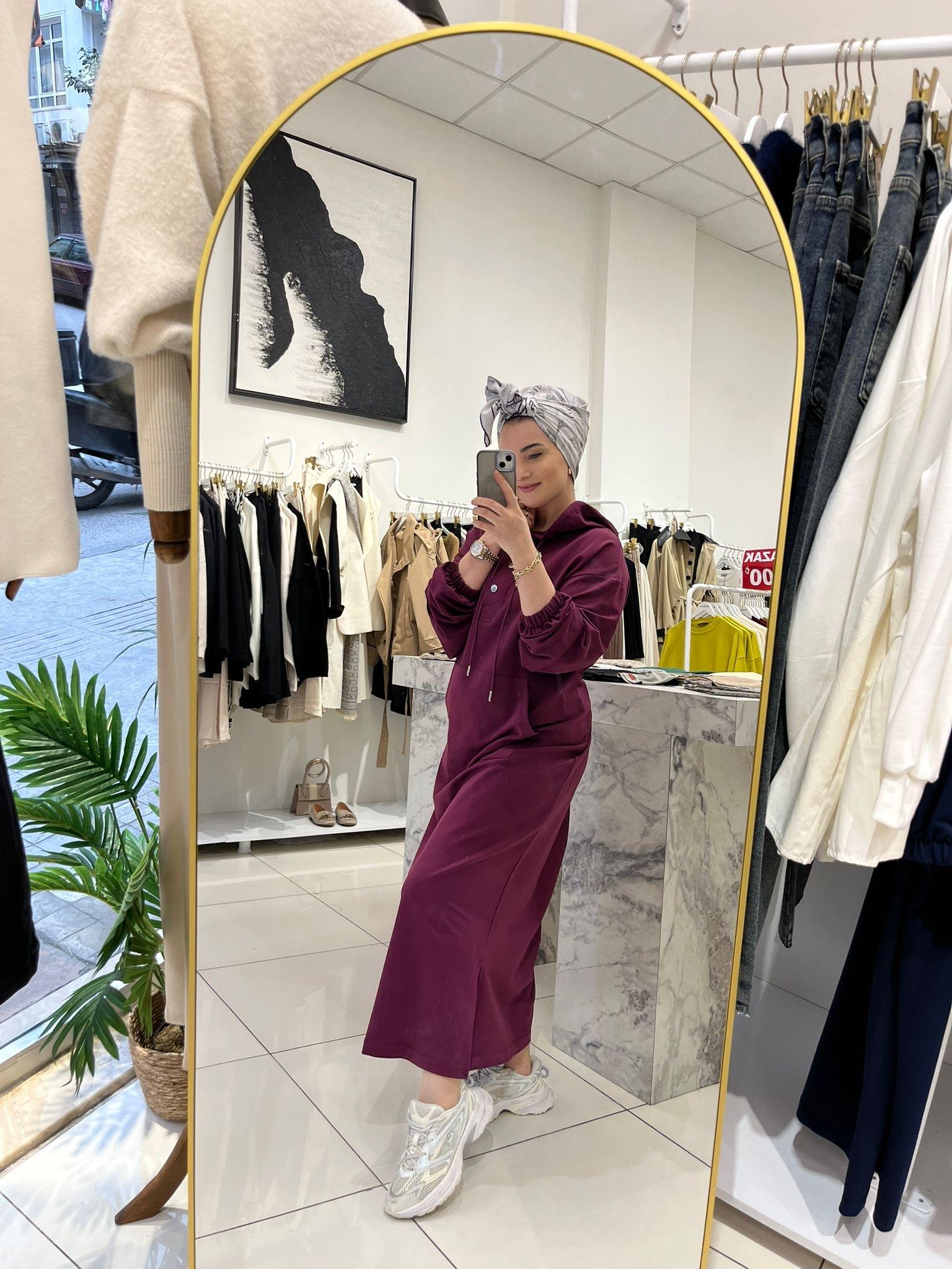 BASKILI KAPÜŞONLU MODAL ELBİSE