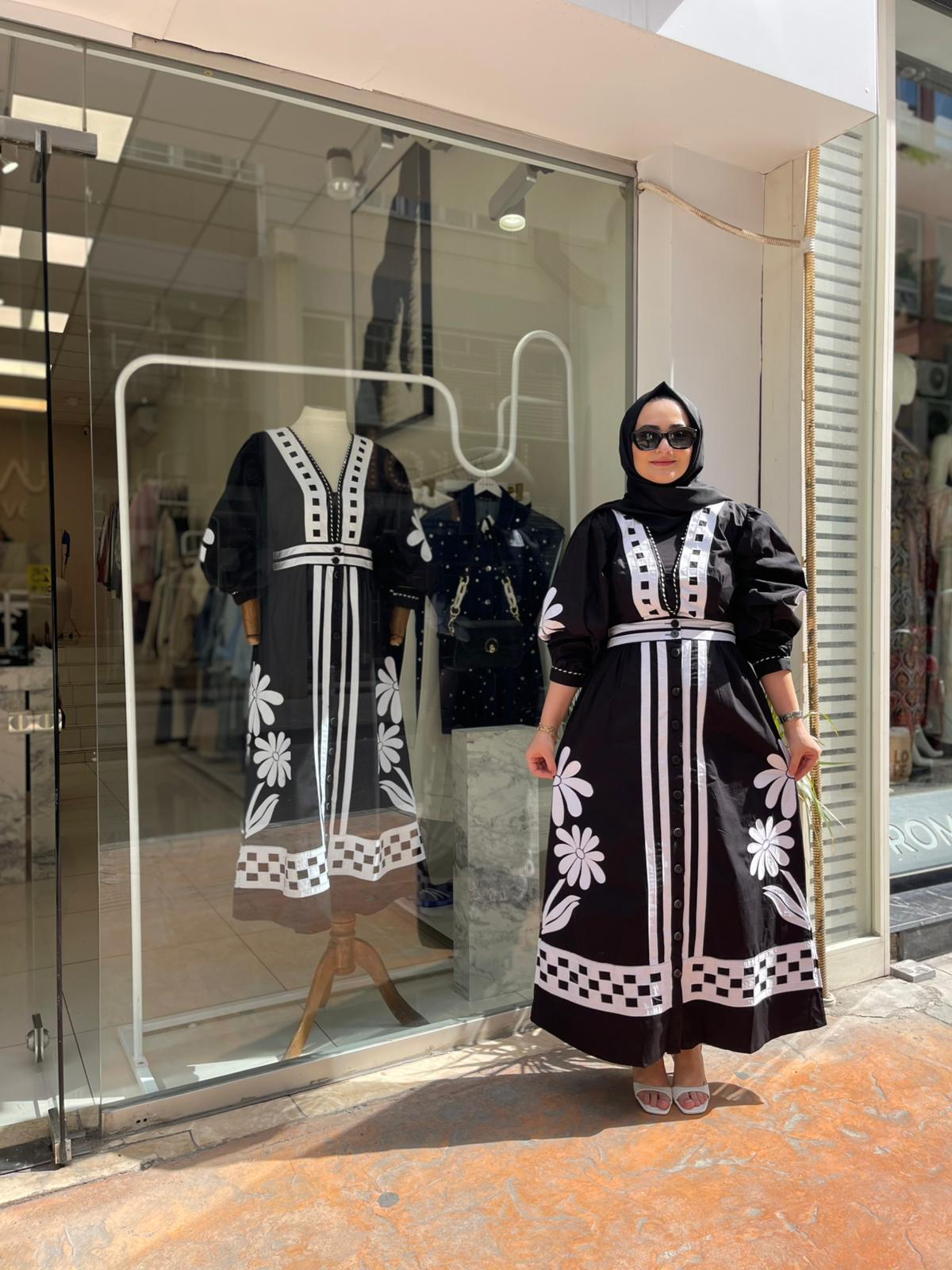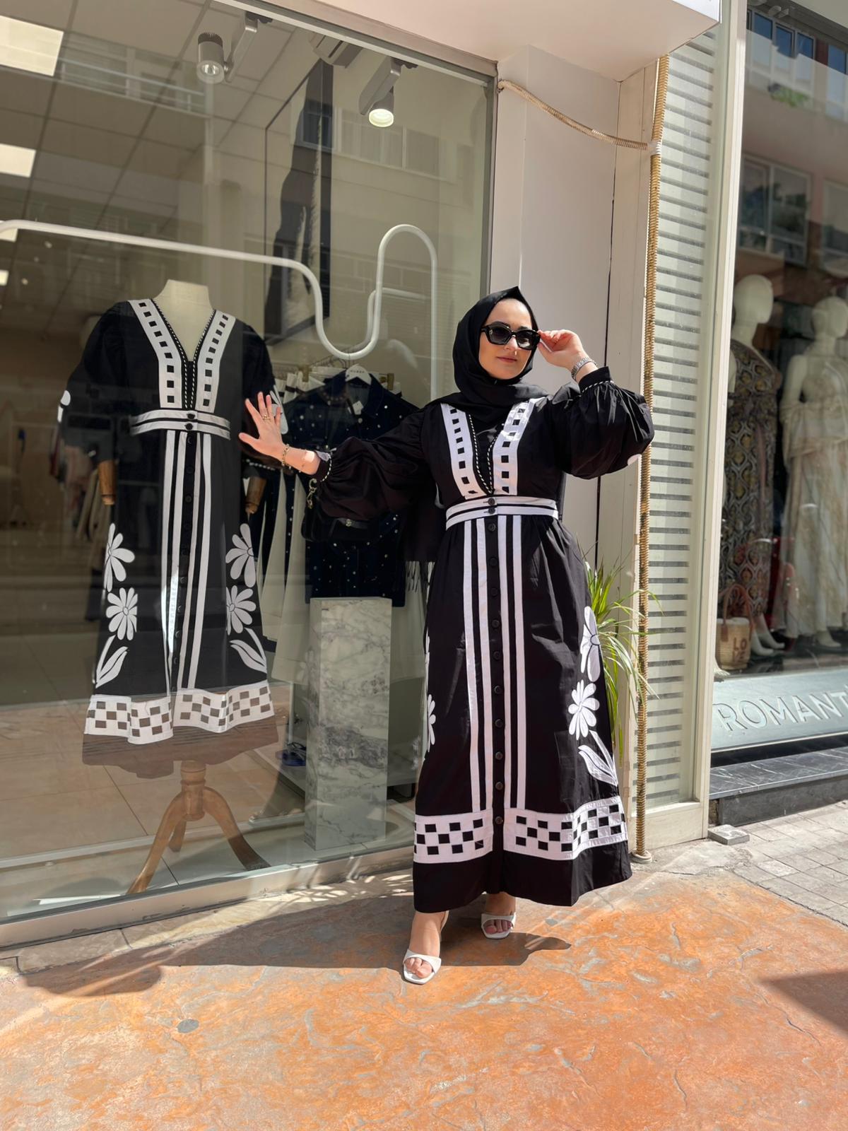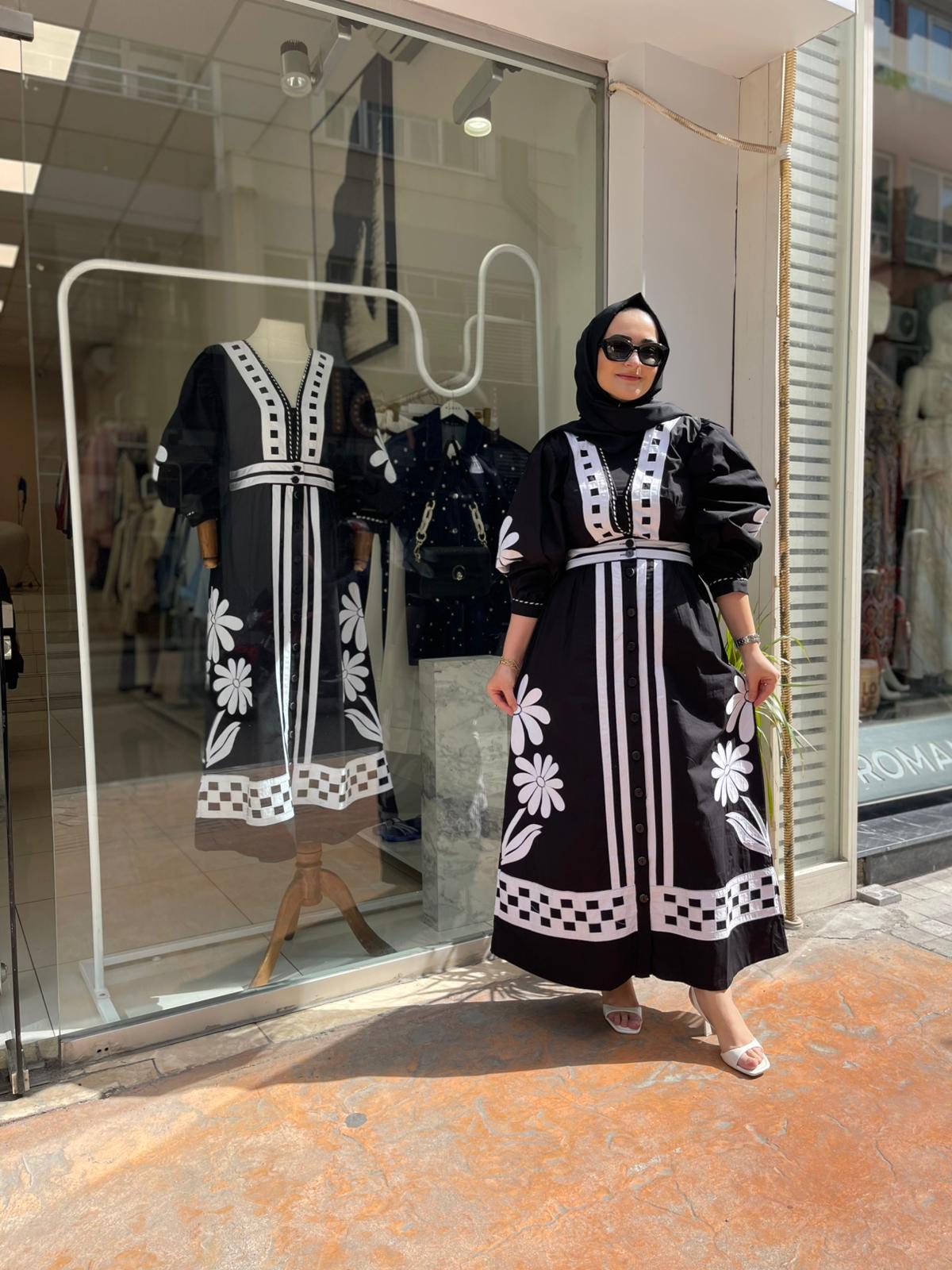 ÇİÇEK NAKIŞLI POPLİN ELBİSE
