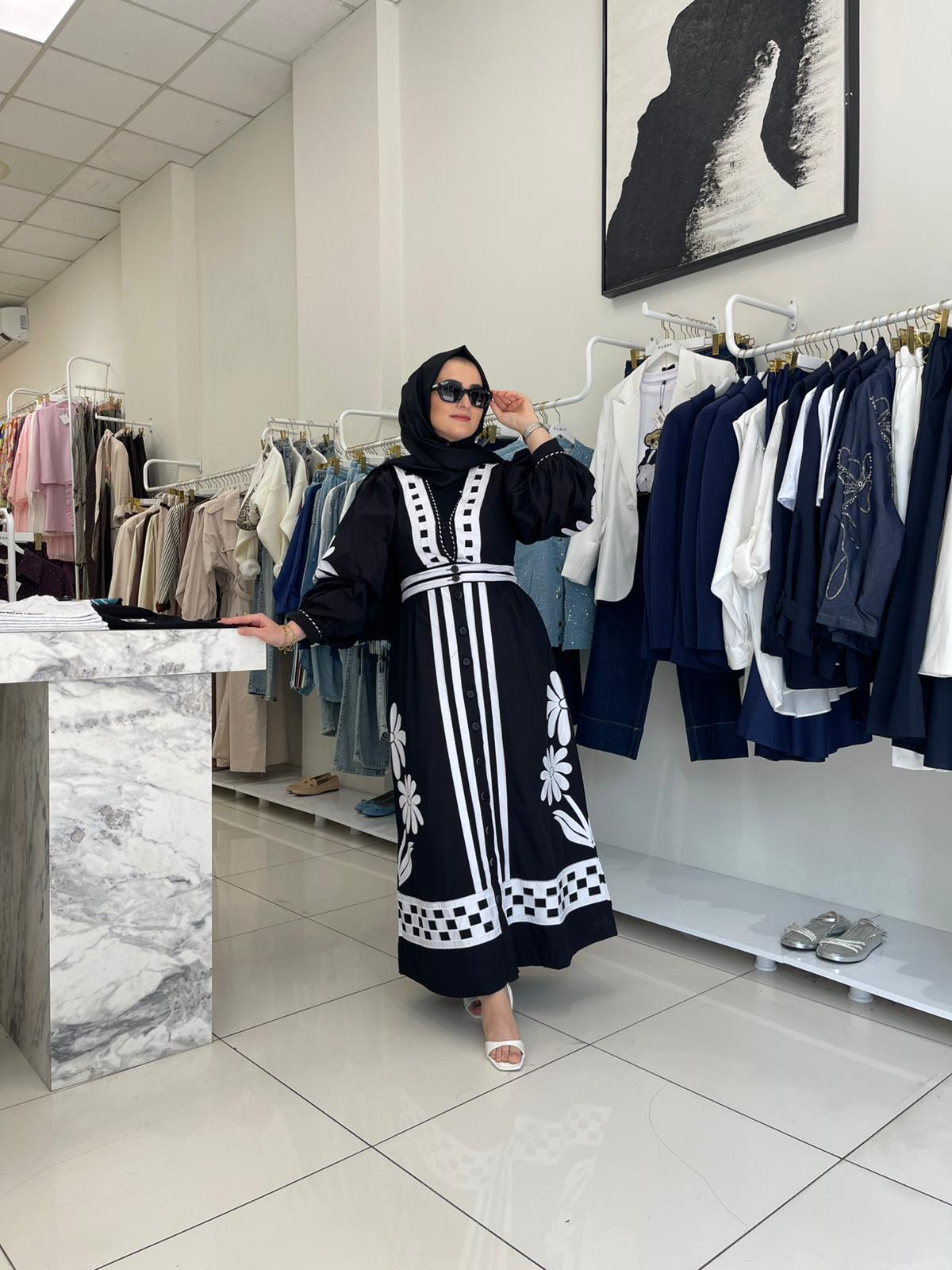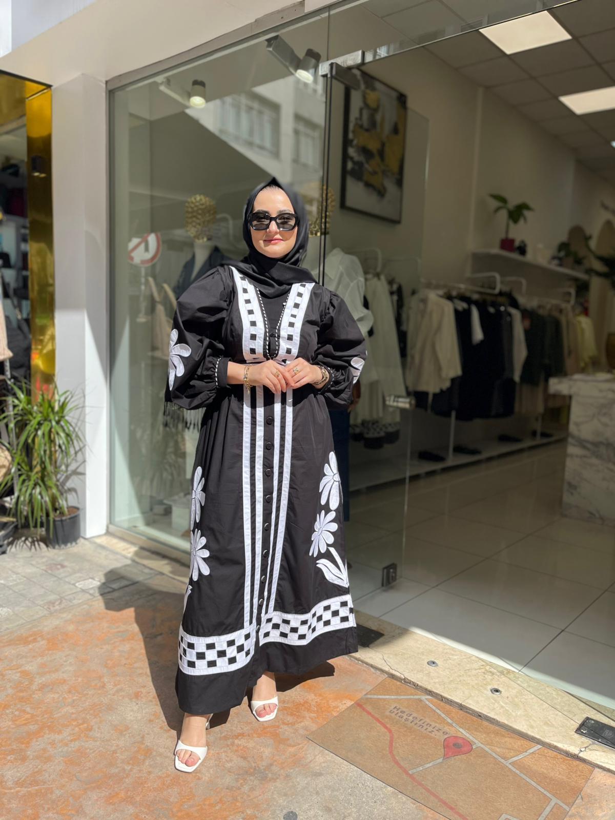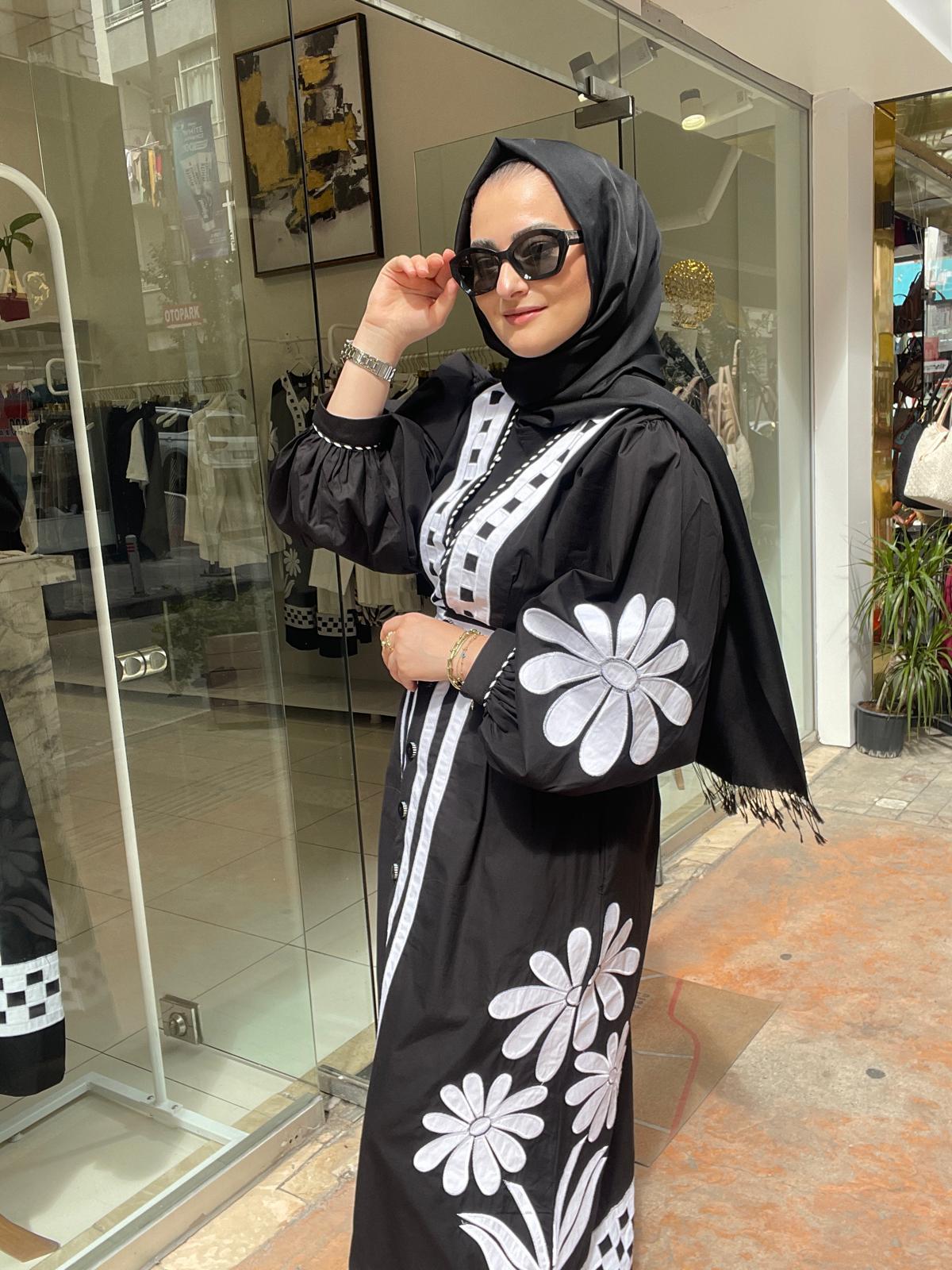 ÇİÇEK NAKIŞLI POPLİN ELBİSE