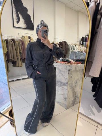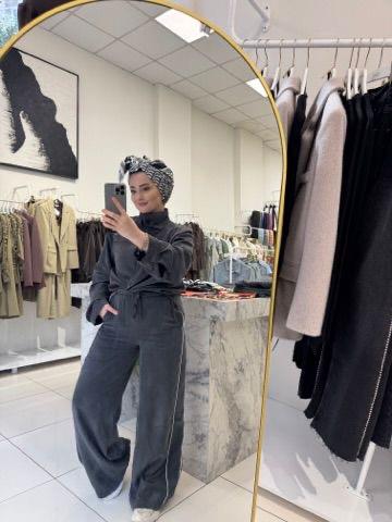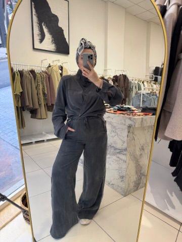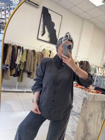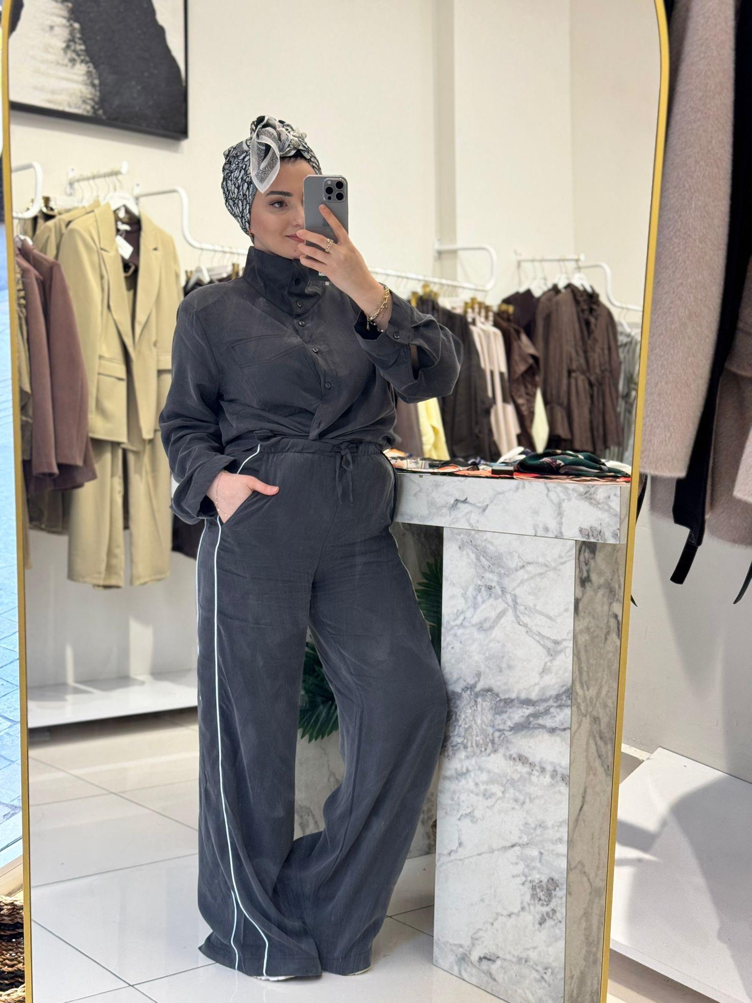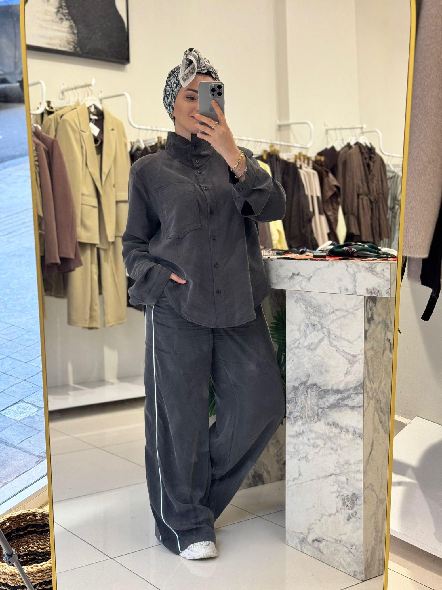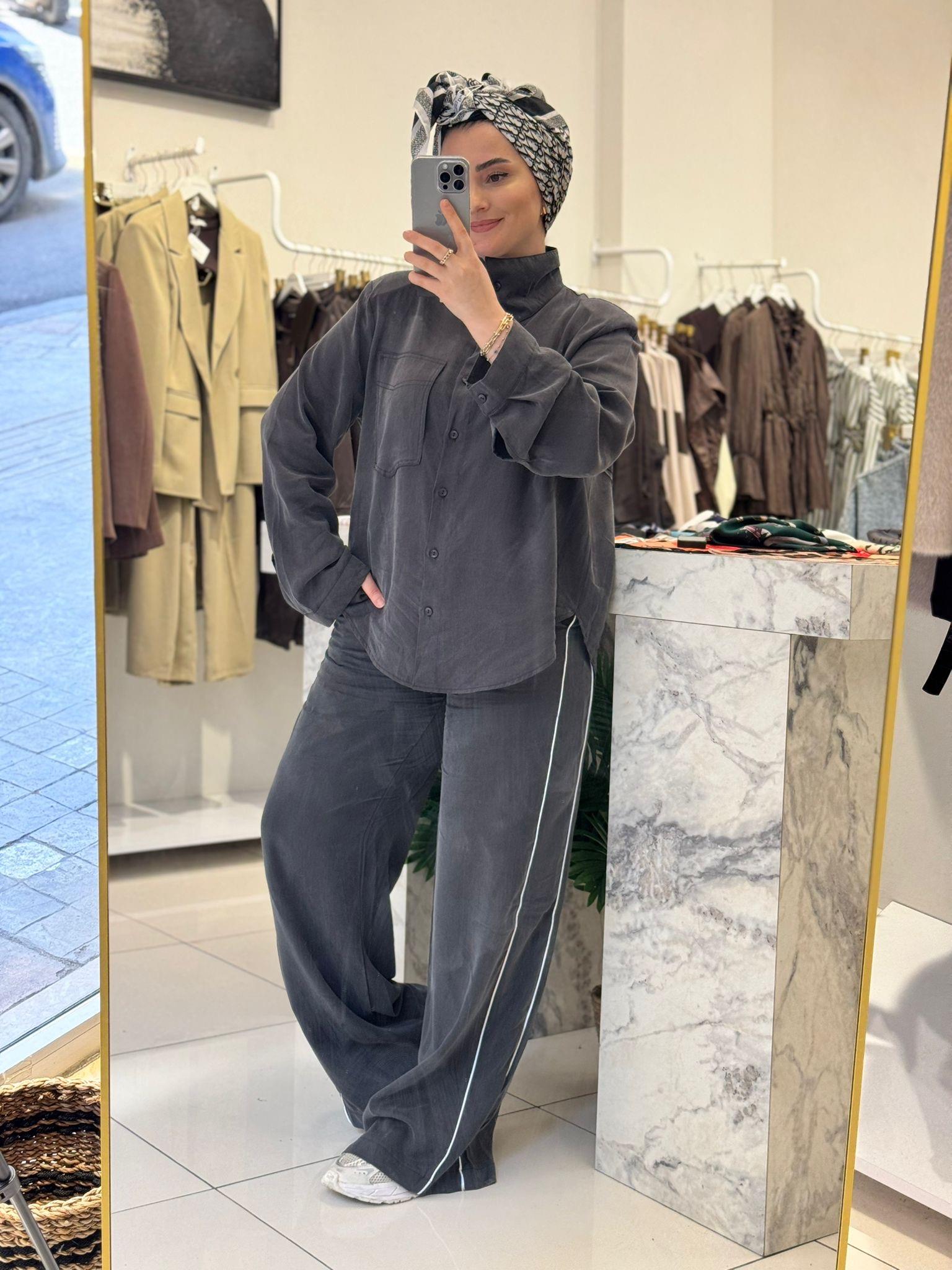 DİK YAKA ŞERİTLİ TENSEL GÖMLEK TAKIM