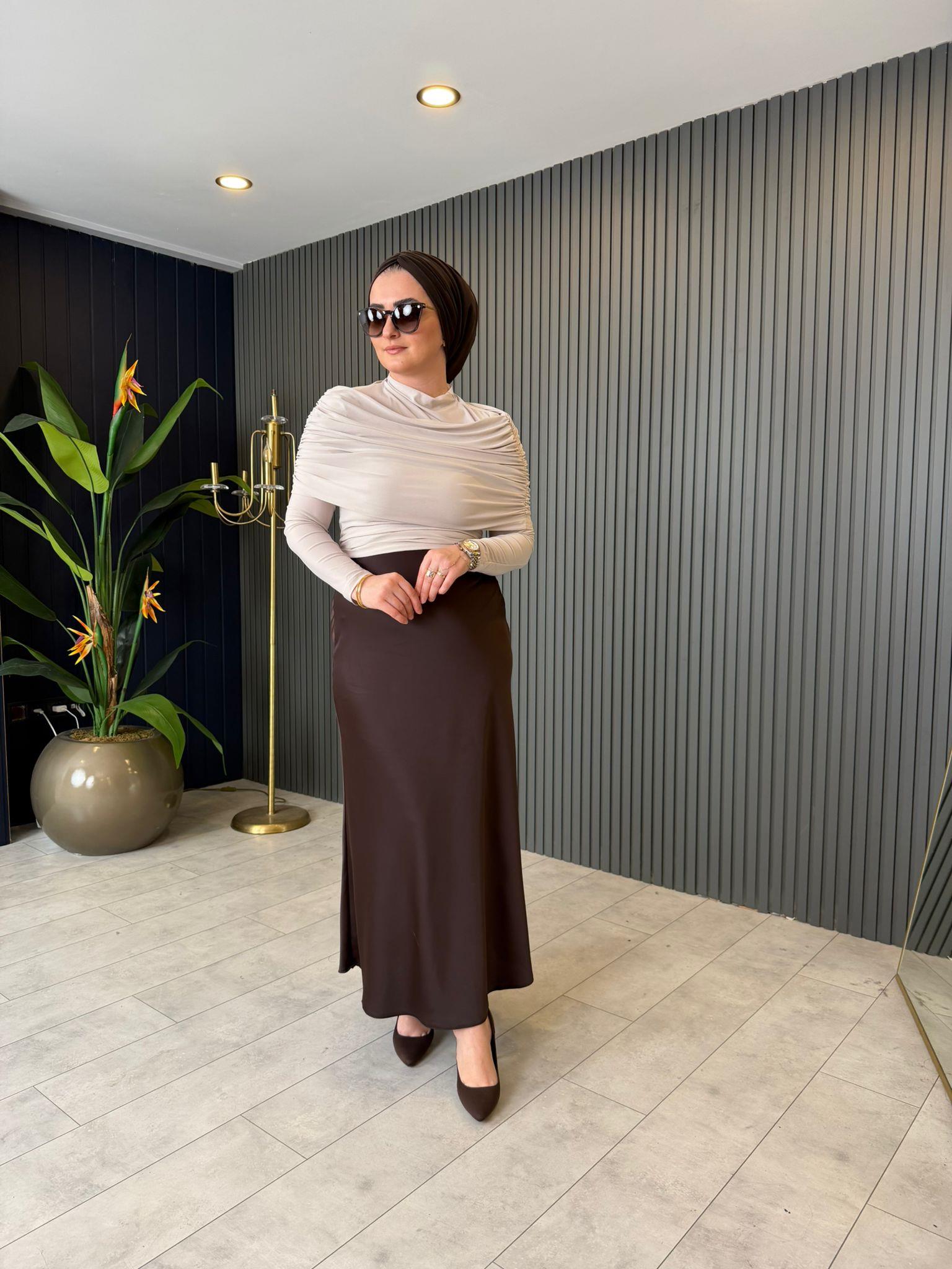 DRAPE KOL DETAYLI SANDY BLUZ (KUB0447)