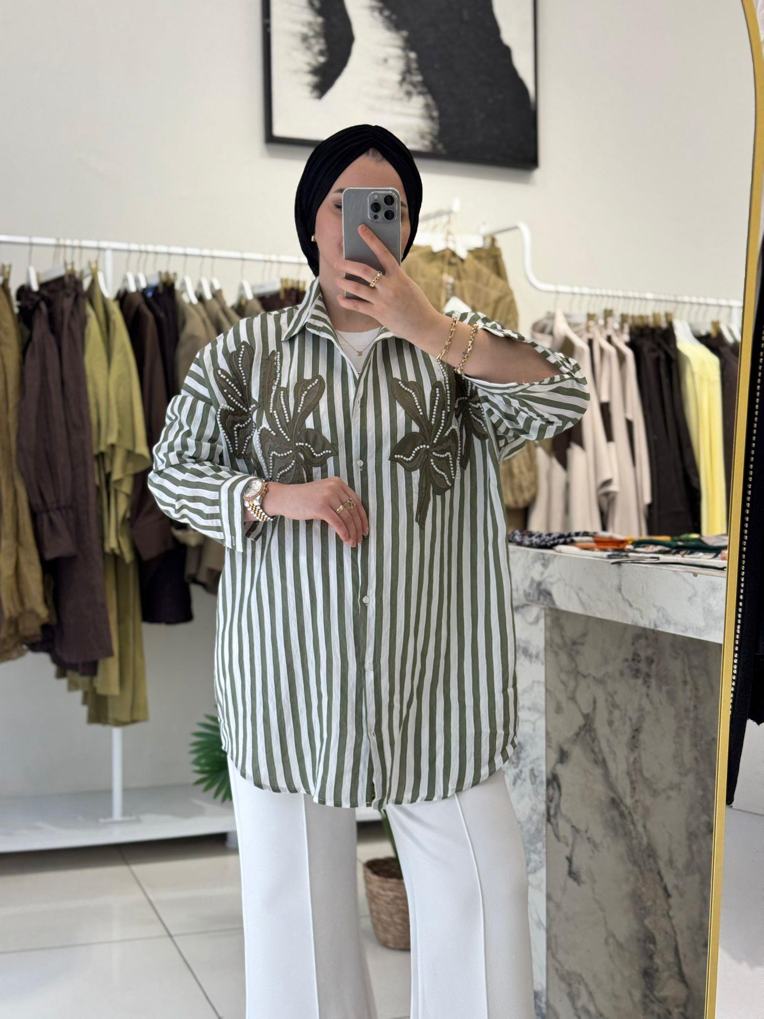 İŞLEMELİ KETEN GÖMLEK