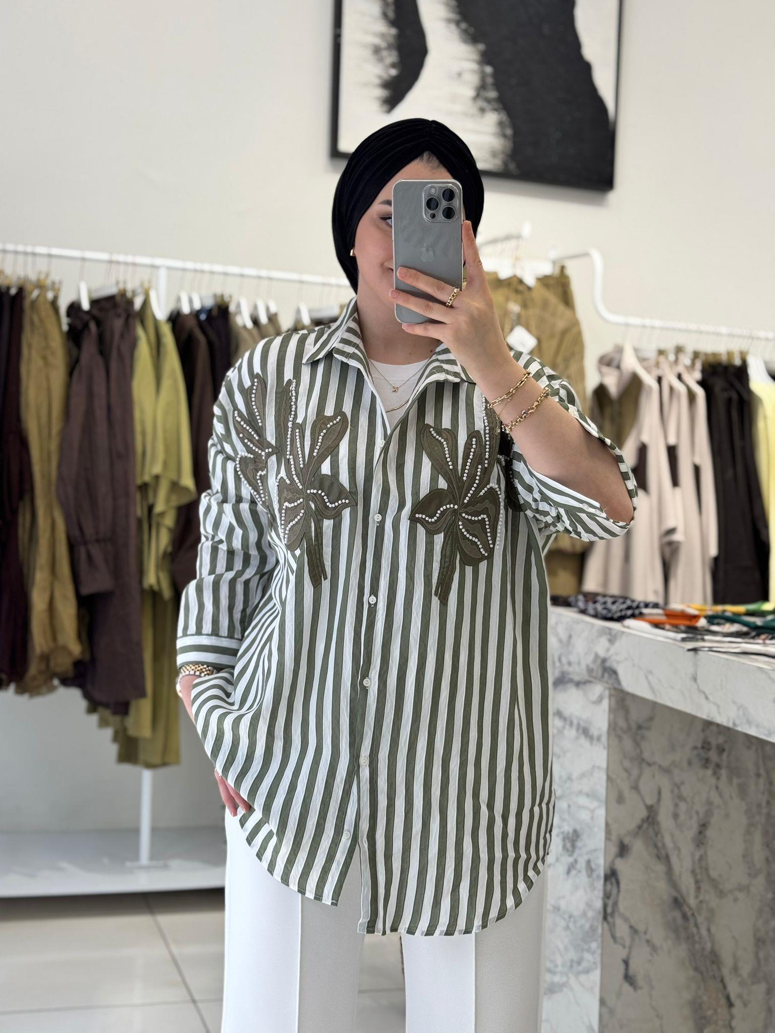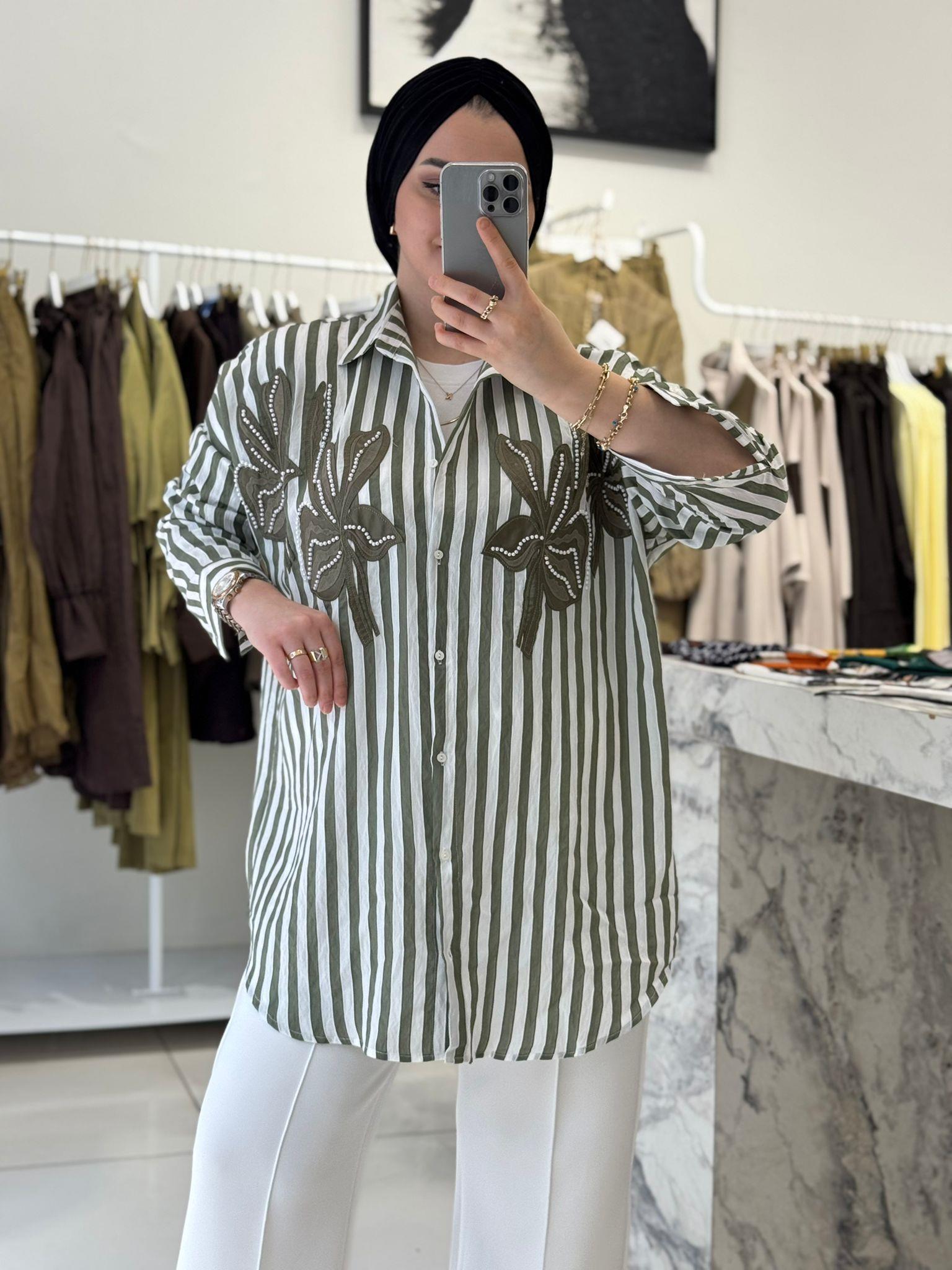 İŞLEMELİ KETEN GÖMLEK (KUB0485)