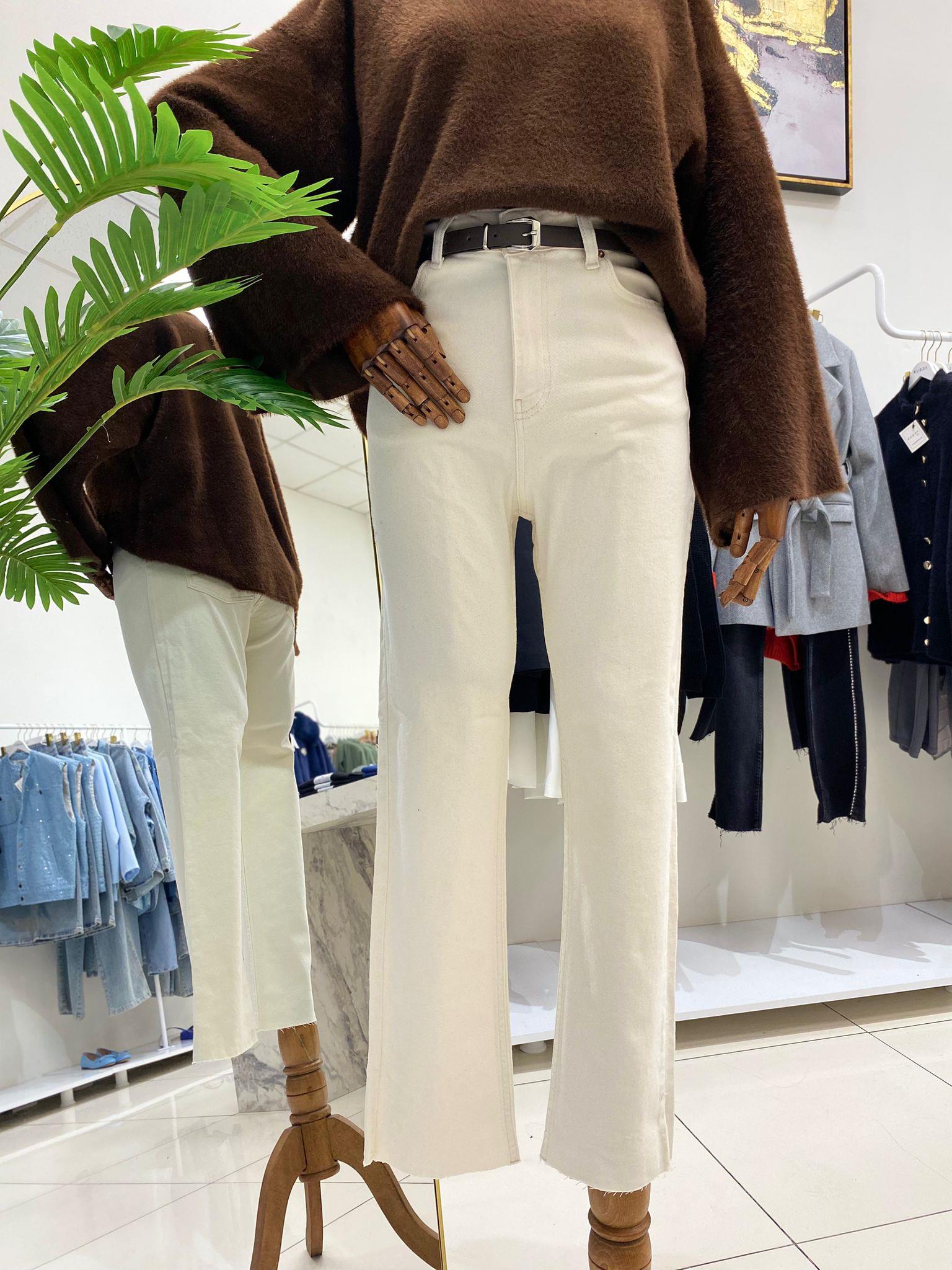KESİK PAÇA EKRU MOM JEAN (KUB0355)