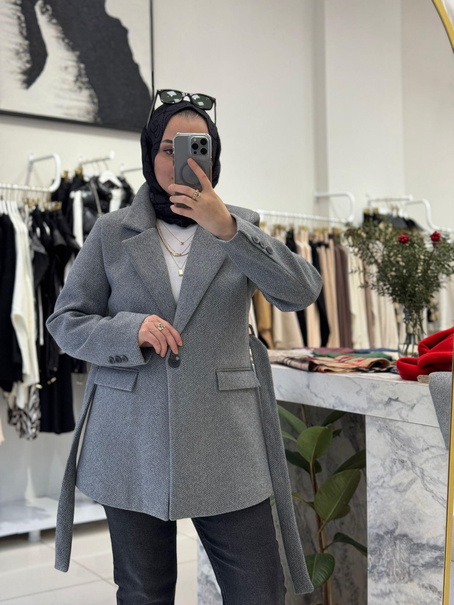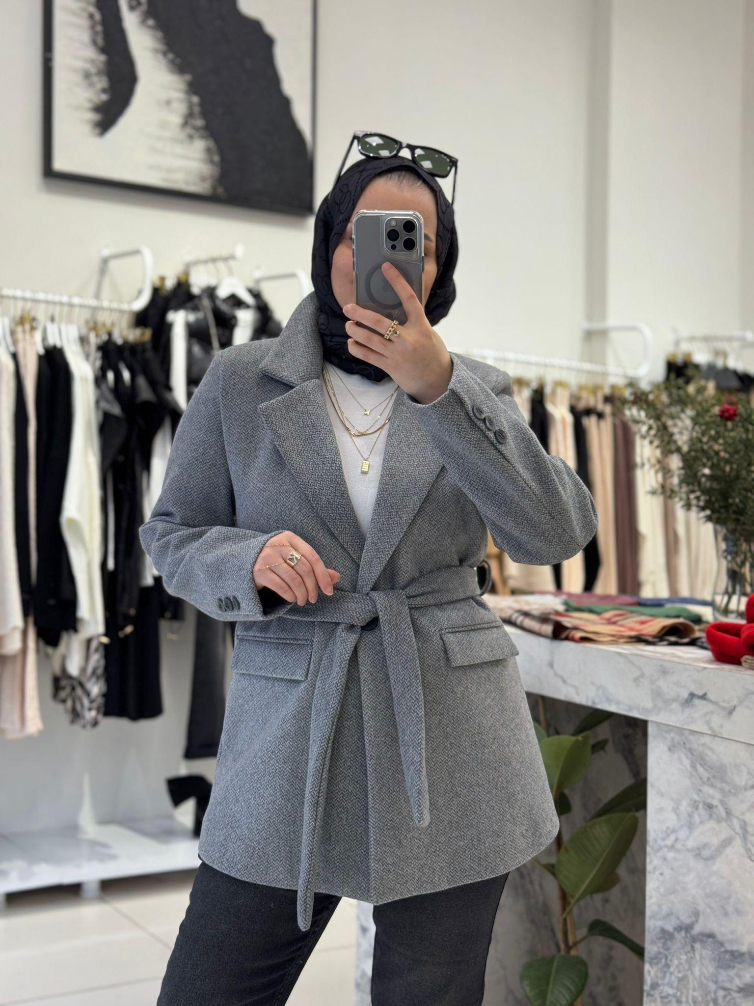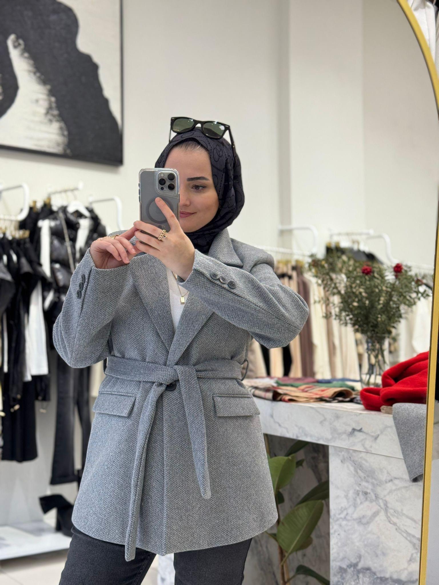 KUŞAKLI KISA KAŞE CEKET