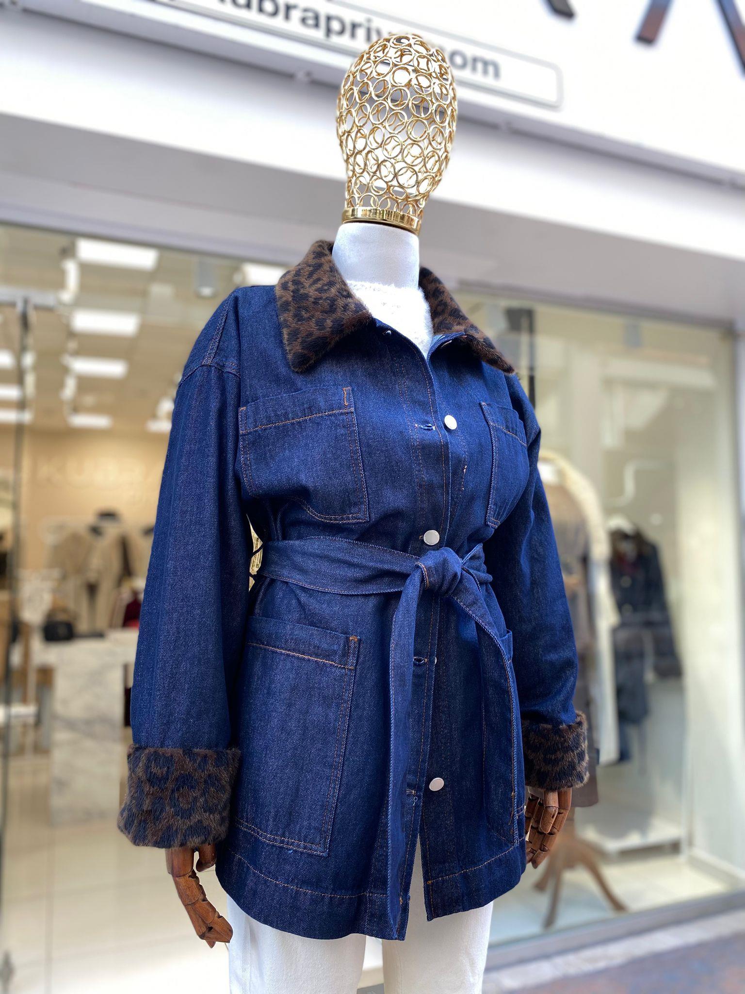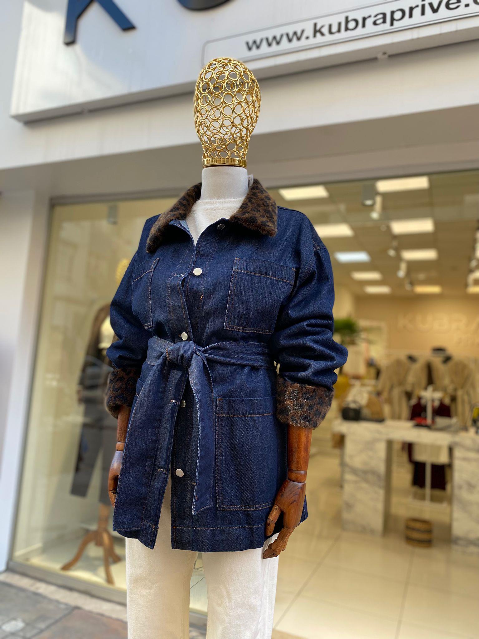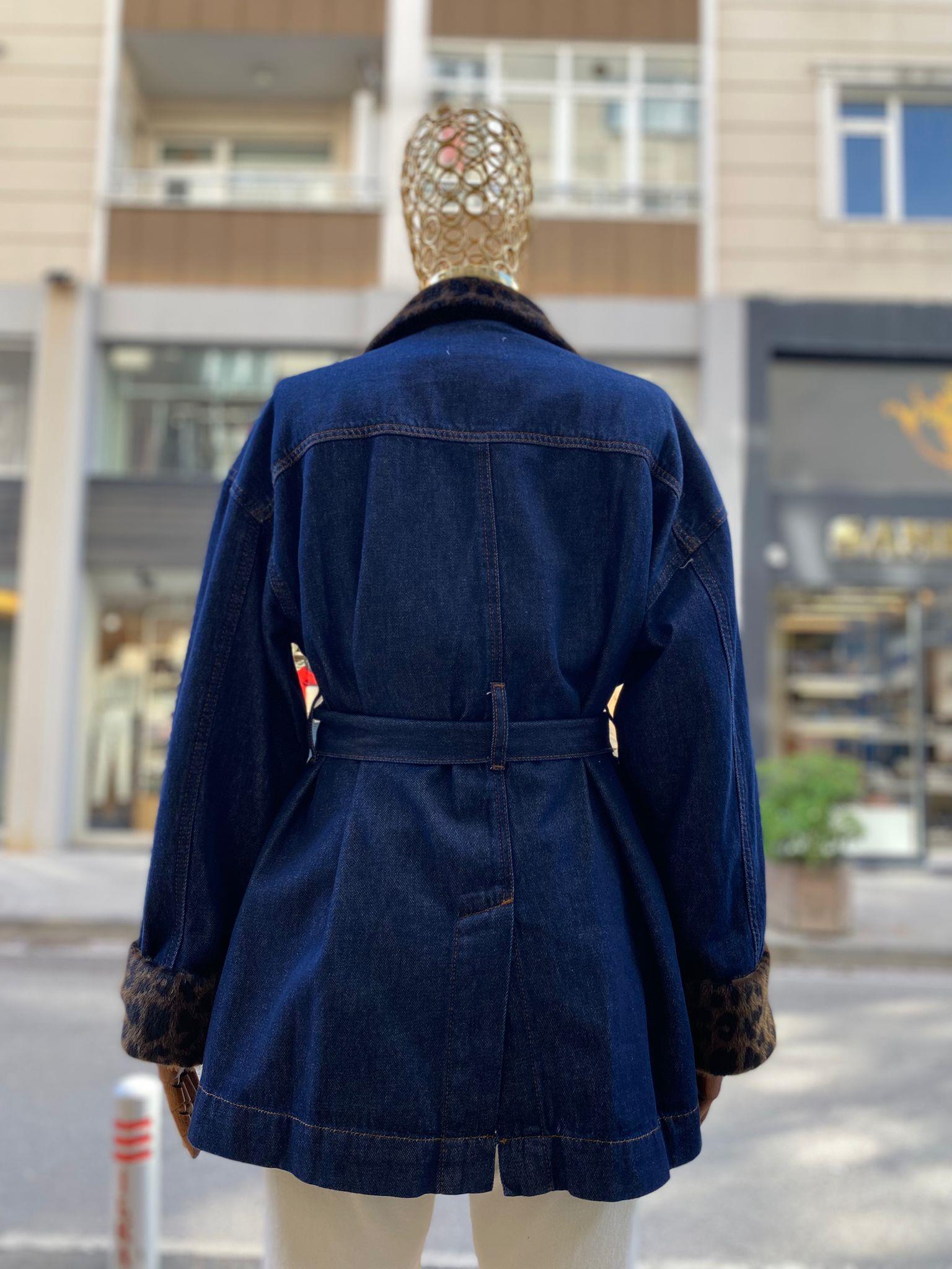 PELUŞ YAKA DETAYLI DENİM CEKET
